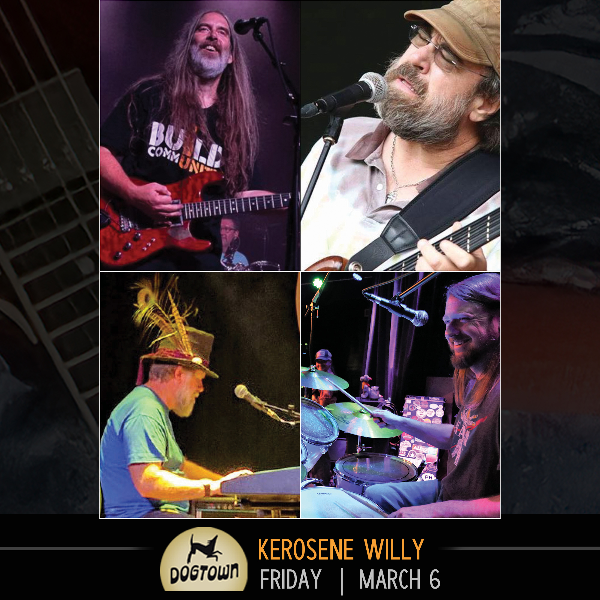 Returning to the stage for another fun night of powerful original music with epic Grateful Dead and other classic jams, Kerosene Willy is ready to get your feet moving! Led by Chopper Campbell, a former Dark Star Orchestra fill in, on guitar and lead vocal, and with the support of veteran area musicians, Jason Tice (Drums), Timbo Sims (Keys) and John McBroom (Bass), the band will get your attention with tight arrangements and supremely spacey interludes. Don’t miss it!